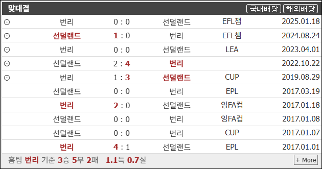- 후반전: 체력전으로 흘러가면 선덜랜드가 우세할 수 있음. 번리는 세트피스나 브로야의 개인 돌파에 의존할 전망.