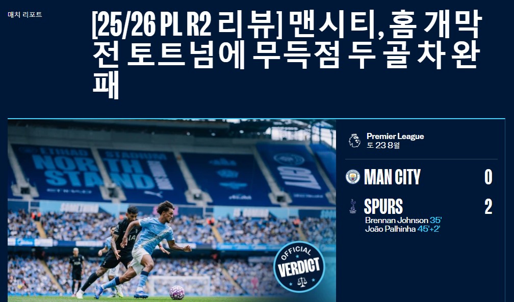 맨시티는 개막전 울브스 원정 4–0 완승으로 기세를 끌어올렸지만, 2라운드 토트넘전 2–0 패배로 충격을 받았습니다. 챔피언스리그 없이 리빌딩 시즌인 만큼, 이번 원정에서 분위기를 반등시키고 자신들의 존재감을 증명해야 할 시점입니다.