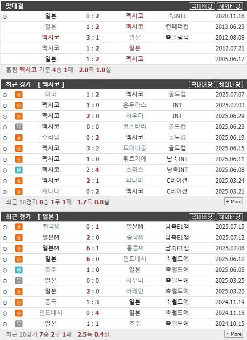 - 의의: 멕시코는 골드컵 우승 후 기세 유지, 일본은 안정적 조직력과 화려한 득점력으로 ‘넘지 못할 벽’ 구축 중